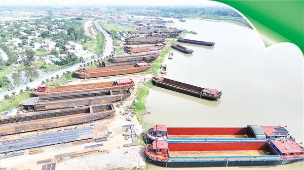 8月8日,由周口市申华船舶制造有限公司正在建造的多艘货轮伫立在周口中心港码头东侧的船台上。据了解,该公司千吨级货船年生产量可达70余艘,业务范围包括船舶设计、建造、维修、拆解、改装等。