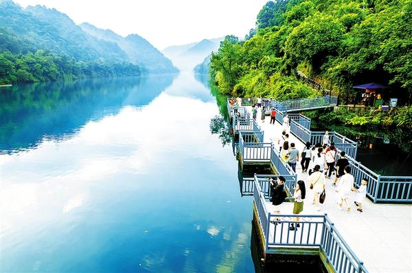 近日,湖南省郴州市资兴市东江湖风景区迎来旅游旺季。近年来,资兴市坚持走生态惠民绿色发展之路,狠抓生态环境保护工作,大力发展以“水”生态文明为鲜明特色的全域旅游,吸引全国各地游客纷至沓来。