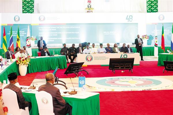 这是8月10日在尼日利亚首都阿布贾拍摄的西共体领导人就尼日尔政变召开的紧急会议现场。索迪克 摄(新华社发)