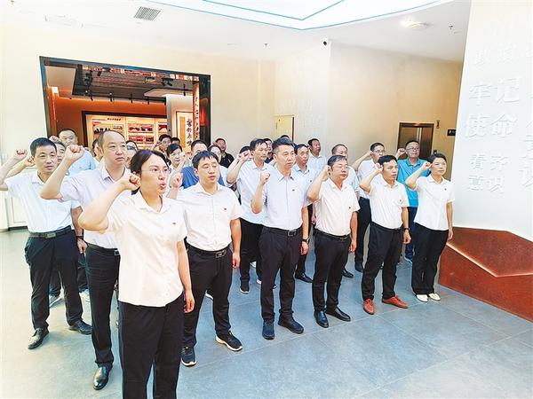 8月10日,商水县财政局组织党员干部职工赴县廉政文化教育展厅参观学习,接受廉政警示教育。图为大家重温入党誓词。