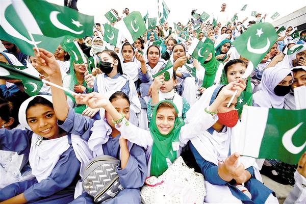 8月14日,在巴基斯坦卡拉奇,当地学生参加巴基斯坦独立76周年庆祝活动。1947年8月14日,巴基斯坦摆脱英国殖民统治宣告独立。新华社发