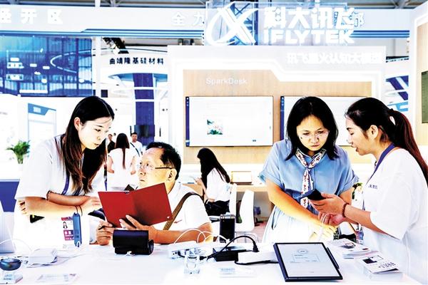 8月16日,观众在第七届中国—南亚博览会上的科大讯飞展位了解数码产品。