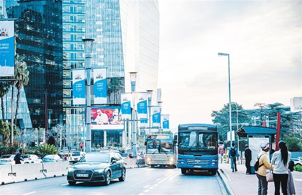 这是8月17日在南非约翰内斯堡拍摄的金砖峰会条幅。