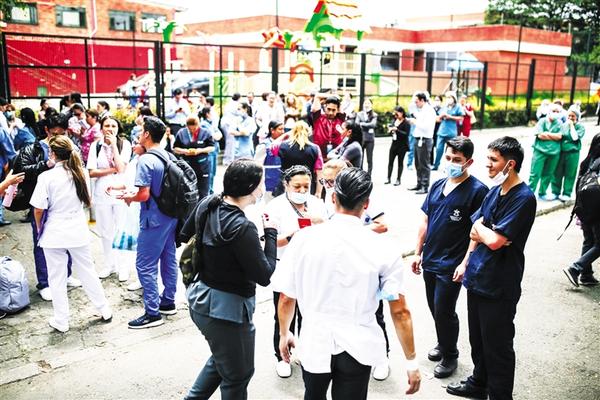 8月17日,在哥伦比亚首都波哥大,人们在地震发生后的街头避难。
