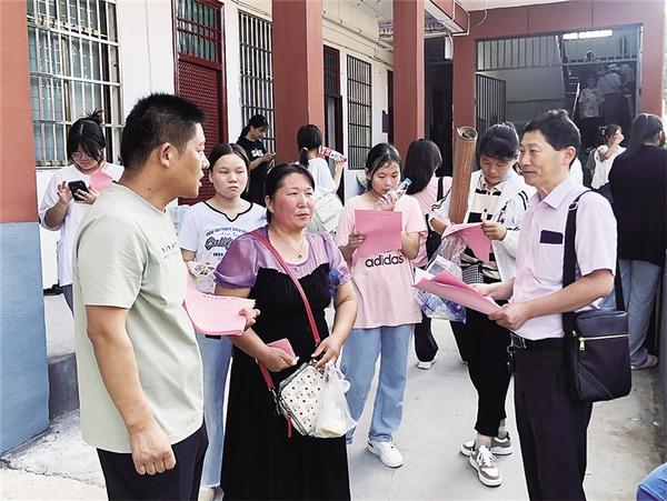 农行周口分行坚持金融为民初心,为特殊群体提供有温度、全方位、优质便捷的金融服务,满足客户日益多元化的金融服务需求。图为近日农行淮阳支行金融服务队员在育华高中指导学生家长下载掌上银行缴纳学费。 王超 张继平 摄