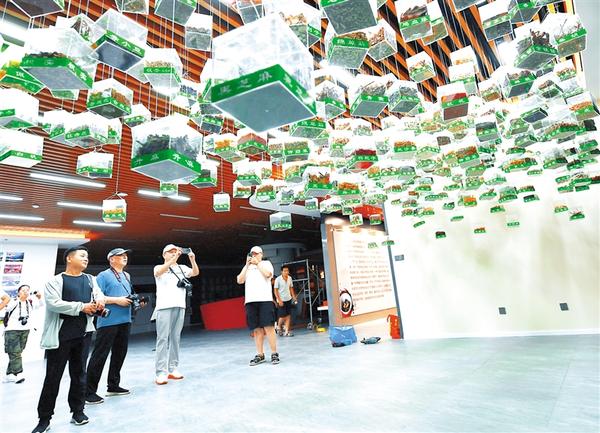 8月21日,在河南省四方药业集团有限公司中药创新药中试基地,前来参观的人们被展厅里新颖的悬浮药材库吸引。