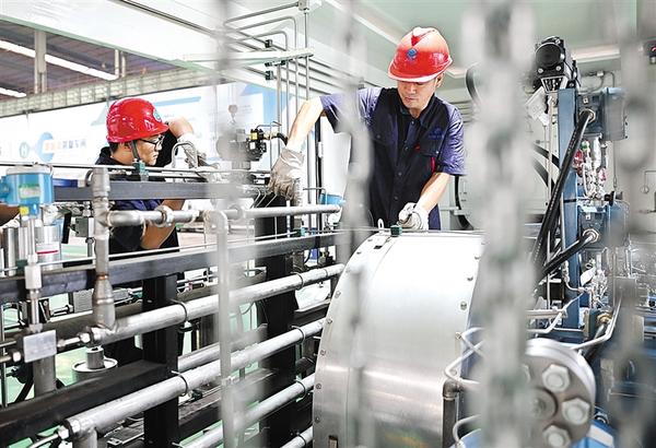 8月21日,工人在唐山市古冶区一家氢能源装备制造企业生产车间工作。