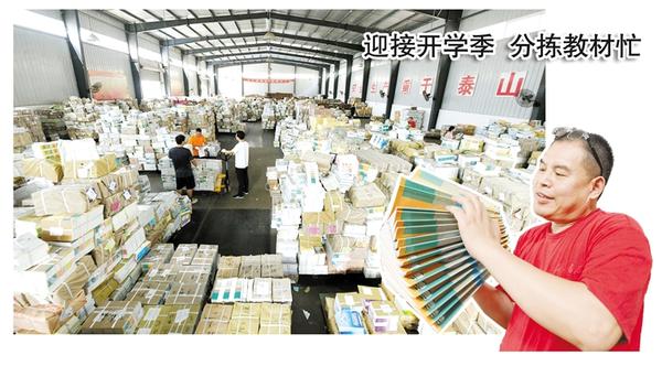 中小学教材发行是党和国家赋予新华书店的政治任务,也是新华书店的重要职责。近年来,尽管中小学教材发行时间越来越晚、越来越集中,但是新华书店干部职工克服种种困难和不利因素,组织专班,加强督导,增加人员和车辆配置,全力保障中小学教材发行工作。图为8月23日上午,位于市中心城区建材路的新华书店仓库内,工作人员在堆成小山般的书堆间,忙碌着分拣教材。