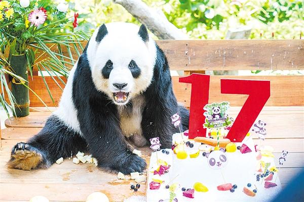 在马来西亚国家动物园大熊猫保护中心内,中国旅马大熊猫夫妇“兴兴”和“靓靓”23日迎来了17岁生日。