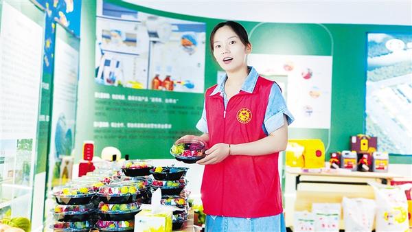 8月24日,周口市率先建成农业强市第六次推进会在项城召开。会前,参会人员来到观摩点之一的项城市乡村振兴馆(中原农博城),现场观摩各镇(街道)展示的最具代表性特色农产品,令人眼前一亮。图为丁集镇工作人员展示果蔬等特色农产品。