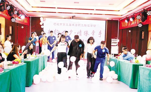 8月22日,项城市总工会联合项城市妇联举办“相约七夕 情缘牵手”特别活动,积极为广大单身职工搭起通向幸福的“鹊桥”。活动中,单身青年通过“采摘水果”“蒙眼喂西瓜”“默契猜词”“执子之手”等趣味游戏积极寻找属于自己的幸福。
