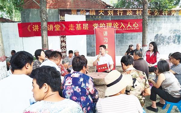 8月25日,在项城市贾岭镇大刘行政村村室门前树荫下,项城市融媒体中心联合贾岭镇金鸡岭宣讲团组织开展了一场别开生面的党的二十大精神宣讲活动,将传统的讲习课堂打造成移动式的“小板凳课堂”,令人耳目一新。