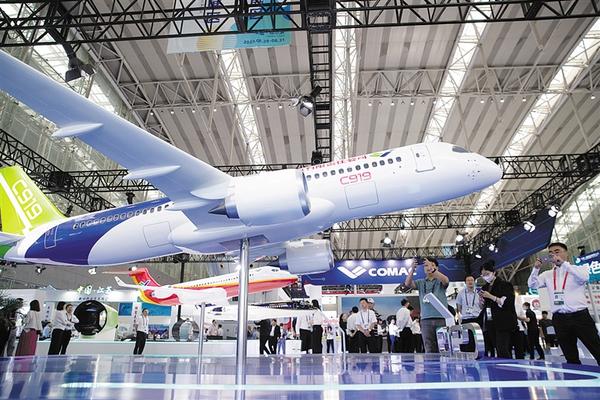 8月29日,参会者在中国商飞公司展厅拍摄C919飞机模型。