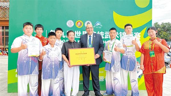 图为国际武联副主席谢里夫·穆斯塔法(右四)和周口八卦拳代表队部分队员合影。②18