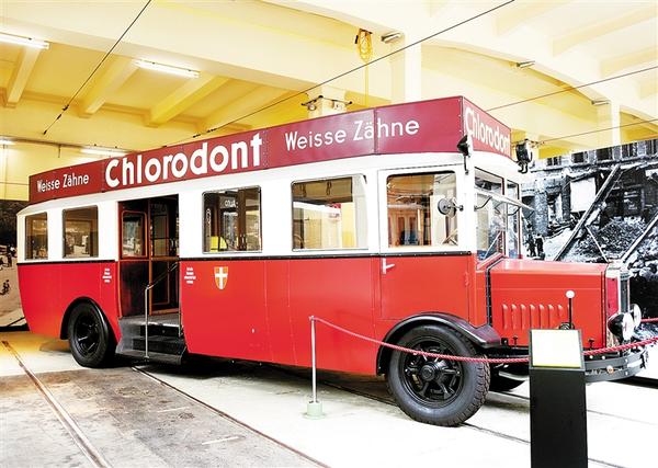这是8月30日在奥地利维也纳交通博物馆拍摄的20世纪使用的城市公交车。