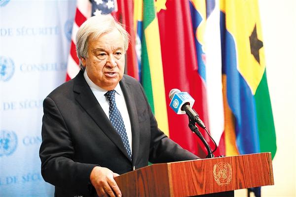 8月31日,联合国秘书长古特雷斯在位于纽约的联合国总部举行的新闻发布会上讲话。