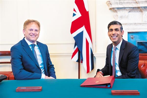 这是8月31日在英国伦敦首相府拍摄的英国首相苏纳克(右)和格兰特·沙普斯。