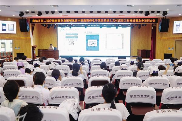 本报讯 (记者 徐松 通讯员 张洋) 为进一步加大医保电子凭证及线上支付应用的推广力度,提高医保电子凭证的激活率和使用率,8月30日下午,郸城县第二医疗健康服务集团县中医院召开医保电子凭证及线上支付应用工作推进暨业务培训会议。集团总医院全体科主任、护士长、质控员,中药科、药剂科、医技科室、结算中心等相关科室人员参加会议。