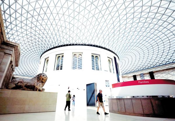 9月7日,人们在英国伦敦大英博物馆中参观游览。