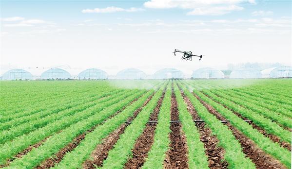9月11日,扶沟县省级蔬菜现代农业产业园内,工作人员操作无人机在胡萝卜田内进行飞防作业。扶沟县1万亩连片成方的西兰花、胡萝卜种植基地,工作人员用无人机开展病虫害统防作业一次仅需2天,可节约人工和药肥成本4万元。 谷志方 摄