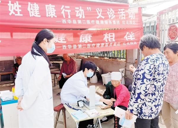 今年以来,西华县红花集镇卫生院以服务群众为宗旨,通过多种途径宣传国家基本公共卫生服务政策,提高群众对公共卫生服务政策的知晓率。截至目前,该卫生院本年度已开展健康教育讲座26次、健康巡讲26次、公众健康咨询及主题日宣传活动12次、个体化健康教育活动13次,发放各类宣传材料2万余份,服务群众1万余人次。 图为该卫生院医务人员在为群众进行健康义诊。 史书杰 摄