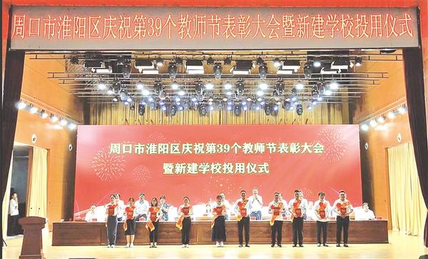 本报讯(记者 侯俊豫 通讯员 牛世杰 徐顺利)9月7日,淮阳区举行庆祝第39个教师节表彰大会暨新建学校投用仪式。大会深入贯彻中央、省、市教育工作部署,认真落实全市教育大会精神,对全区2022—2023学年度教育战线涌现出的先进集体和先进个人进行隆重表彰。区委书记张建党出席会议并讲话,区长王献超主持会议。