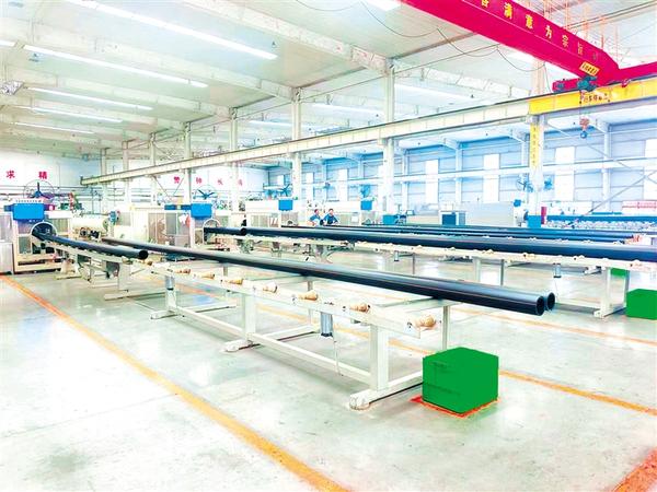 9月12日,在淮阳区联塑工业园的生产车间,多台自动化注塑机生产出一根根管道。这些产品广泛应用于给水、排水、燃气、电力等领域。经过多年培育,塑料制品产业已逐渐发展成为淮阳的主导产业。