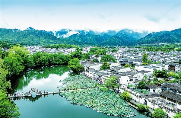 这是9月13日拍摄的黟县宏村(无人机照片)。