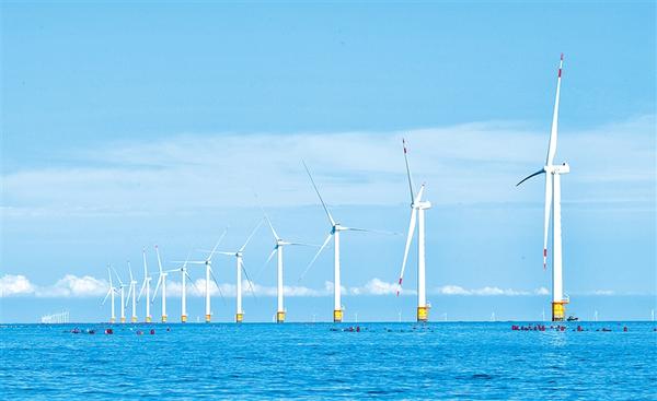 9月13日拍摄的大连庄河海上风电项目。目前,大连庄河已建成海上风电项目4个,装机容量105万千瓦。