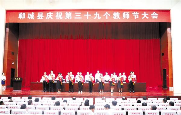 会上,县委副书记、常务副县长宋一兵宣读《郸城县人民政府关于表扬尊师重教先进单位和先进个人的决定》《郸城县人民政府关于表扬奖励刘成章同志的决定》。县委常委、县委组织部部长蒋磊宣读《郸城县人民政府关于表扬教育系统先进集体和先进个人的决定》。副县长牛海燕作全县教育工作报告。
