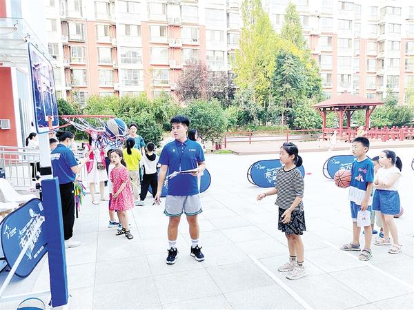 为鼓励广大少年儿童积极参加体育活动,9月17日下午,市城乡一体化示范区文昌街道中原社区举行少年儿童趣味投篮比赛,让大家在欢乐中得到锻炼,进一步推动社区精神文明建设。图为中原社区的小朋友排队投篮。