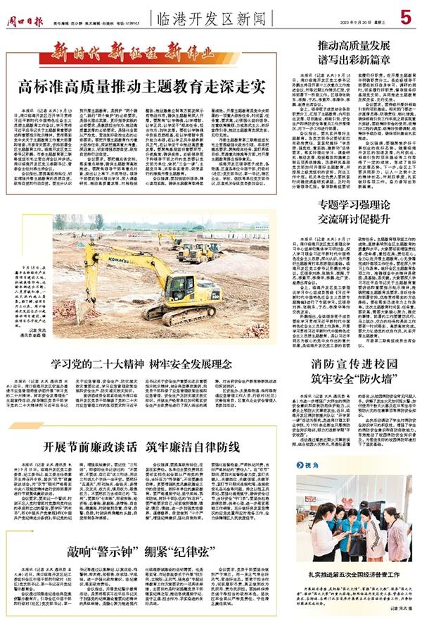 本报讯 (记者 宋风) 9月13日,周口临港开发区召开学习贯彻习近平新时代中国特色社会主义思想主题教育工作会议,学习贯彻习近平总书记关于主题教育重要讲话和重要指示批示精神,贯彻落实党中央关于主题教育工作重大部署和省委、市委有关要求,安排部署全区主题教育工作。临港开发区党工委书记孙鹏、市委主题教育第二联络组组长毛立营出席会议并讲话。周口临港开发区党工委副书记、管委会主任刘涛主持会议。