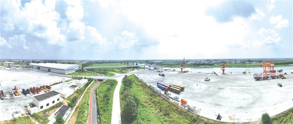 9月14日,位于西华县逍遥镇境内的逍遥港码头,货物装卸作业有序开展。今年以来,该港集装箱装卸量达3826标箱,中纤板、硅石、煤炭、小麦等散货吞吐量达35841吨。记者 张猛 摄