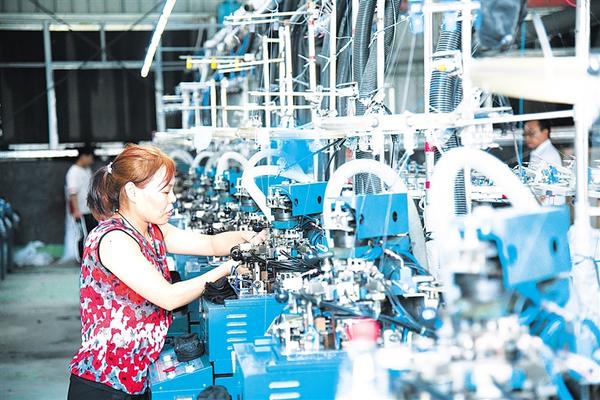 秋分时节,商水县谭庄镇的袜子生产车间里一派繁忙景象。近年来,我市紧紧抓住产业和就业这两个关键,大力发展乡村特色产业,支持返乡创业人士创办企业,完善联农带农富农机制,不断拓宽群众增收致富渠道。记者 付永奇 摄