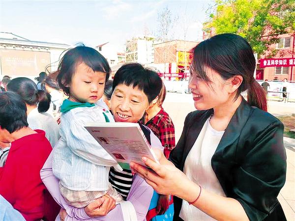 近日,扶沟县科协联合相关单位在县大程广场开展以“提升全民科学素质,助力科技自立自强”为主题的2023年“全国科普日”宣传活动。图为扶沟县科协工作人员(右)向群众发放科普资料。