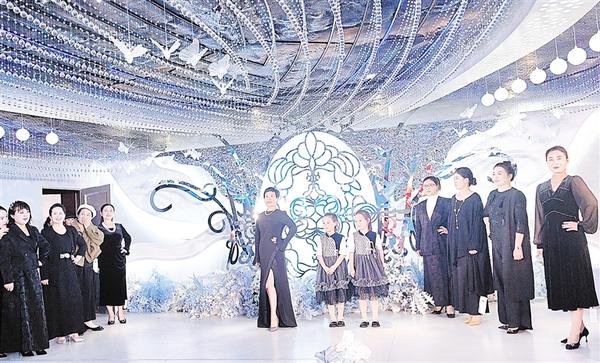 金秋飒爽,丹桂飘香。为弘扬中华民族优秀传统文化,营造欢乐祥和的节日氛围,昨日,周口市三川巾帼创业联合会举行迎“双节”晚会,喜迎中秋、共贺国庆。图为晚会服装走秀现场。 记者 刘俊涛 摄