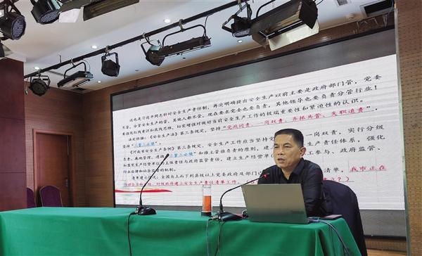 9月26日上午,周口市应急管理宣讲小纵队队长耿绍行为全市交通运输安全应急管理干部宣讲党的创新理论。记者 王凯 通讯员 郭元元 摄