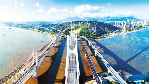 福厦高铁乌龙江大桥(中)(9月26日摄,无人机照片)。9月28日上午9时15分,福厦高铁首趟复兴号智能动车组G9801次列车从福州南站缓缓开出,一路南下,奔向厦门北站。这标志着中国首条时速350公里跨海高铁——福厦高铁正式开通运营。福厦高铁北起福州,途经莆田、泉州,南至厦门和漳州,全长277公里。开通后,福州至厦门的列车运行时间将从现在的2小时左右缩短至1小时以内,两地间形成“一小时生活圈”。