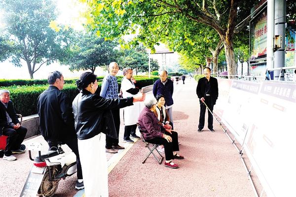 近日,县自然资源局在县人民广场举行“壮丽七十四载、奋进新时代”红色宣讲活动,县自然资源局退休干部韩其功(右一)带领在场群众回顾了中国共产党的发展历程,让在场群众受到了一次爱国主义教育的洗礼。记者 张洪涛 通讯员 王立平 摄