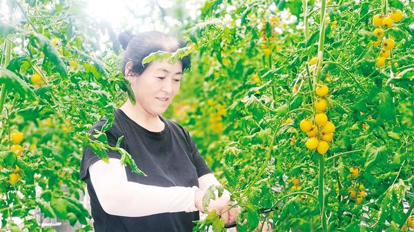 “迷你番茄”助增收 时下,项城市田间地头处处呈现一派丰收景象,农民正忙着收割玉米、大豆等。图为丁集镇绿色农业种植基地一名菜农忙着采摘“迷你番茄”。 记者 张志新 摄