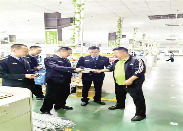 西华县应急管理局工作人员向企业负责人宣传安全生产、防灾减灾知识。