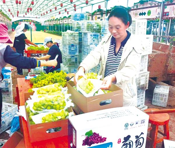 位于淮阳区曹河乡的宛丘农场,占地2000余亩,种植有葡萄、冬枣、蔬菜等,产品远销北京、上海等。由于农场注重无公害种植,产品在市场上供不应求。图为工人麻利地将葡萄装箱。 记者 侯俊豫 通讯员 黄旭辉 摄