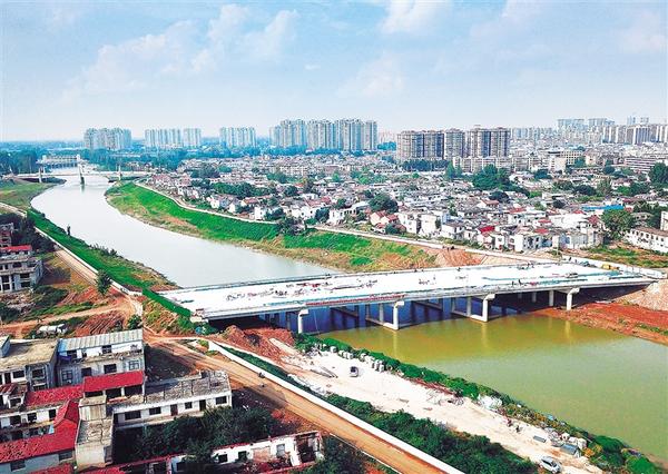 昨日,文昌大道跨贾鲁河大桥施工进展顺利,主体工程已经完成。该桥作为我市重点规划项目,也是文昌大道西延的重要组成部分。 记者 沈湛 摄