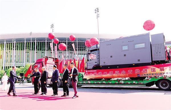 当日,第六届中国国际进口博览会首批展品进馆仪式在国家会展中心(上海)举行。来自技术装备展区、医疗器械及医药保健展区和汽车展区五家展商的展品首批进馆,第六届进博会展区搭建布置工作全面展开。