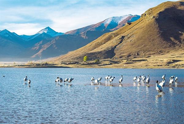 10月下旬,西藏自治区拉萨市林周县迎来2023年第一批越冬黑颈鹤。它们将在这里一直待到来年三四月份。黑颈鹤是国家一级保护动物,主要栖息在海拔2500米至5000米的高原、草甸、沼泽地带。拉萨北部的林周县平均海拔约4200米,是黑颈鹤的主要越冬地之一。