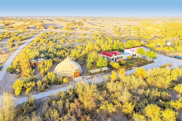 这是德力格老人在沙漠深处的家(无人机照片,10月27日摄)。“时代楷模”苏和是内蒙古阿拉善盟退休干部,从2004年到2021年间,他和老伴德力格在额济纳旗黑城遗址边种下了9万棵梭梭苗,用3500亩的梭梭林为黑城遗址筑起了一道宽500米、长3公里的生态屏障,他被誉为“大漠胡杨”“沙漠愚公”。2021年,苏和老人去世。德力格和他们的孩子依然坚守在梭梭林,守护着苏和老人的绿色成果,并将其不断扩大。新华社记者 连振 摄