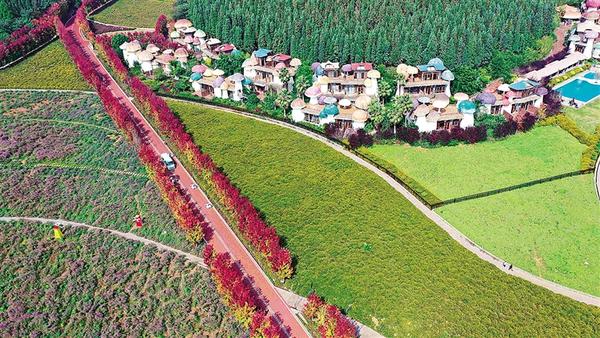11月1日,游客在贵州省黔西南布依族苗族自治州兴义市观赏枫叶(无人机照片)。
