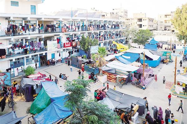 这是11月1日在加沙地带南部城市汗尤尼斯拍摄的一处临时难民营地。加沙地带人口大约230万,超过一半已逃离家园。