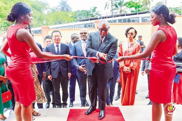 11月2日,刚果(金)总理卢孔德(前中)在首都金沙萨举行的落成仪式上剪彩。当日,由华为公司承建的刚果(金)财政部云数据中心落成仪式在首都金沙萨举行。这是刚果(金)首个建成投入使用的云数据中心。