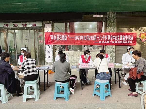 本报讯(记者 徐松 通讯员 张洋文/图) 10月30日上午,郸城县第二医疗健康服务集团县中医院医护人员在县直诊所开展“世界卒中日”义诊宣传活动。